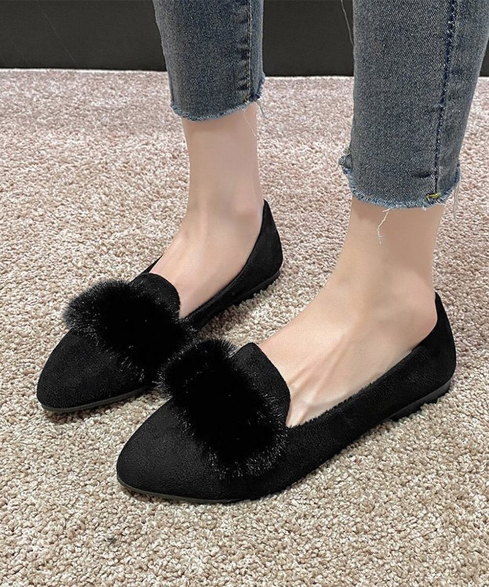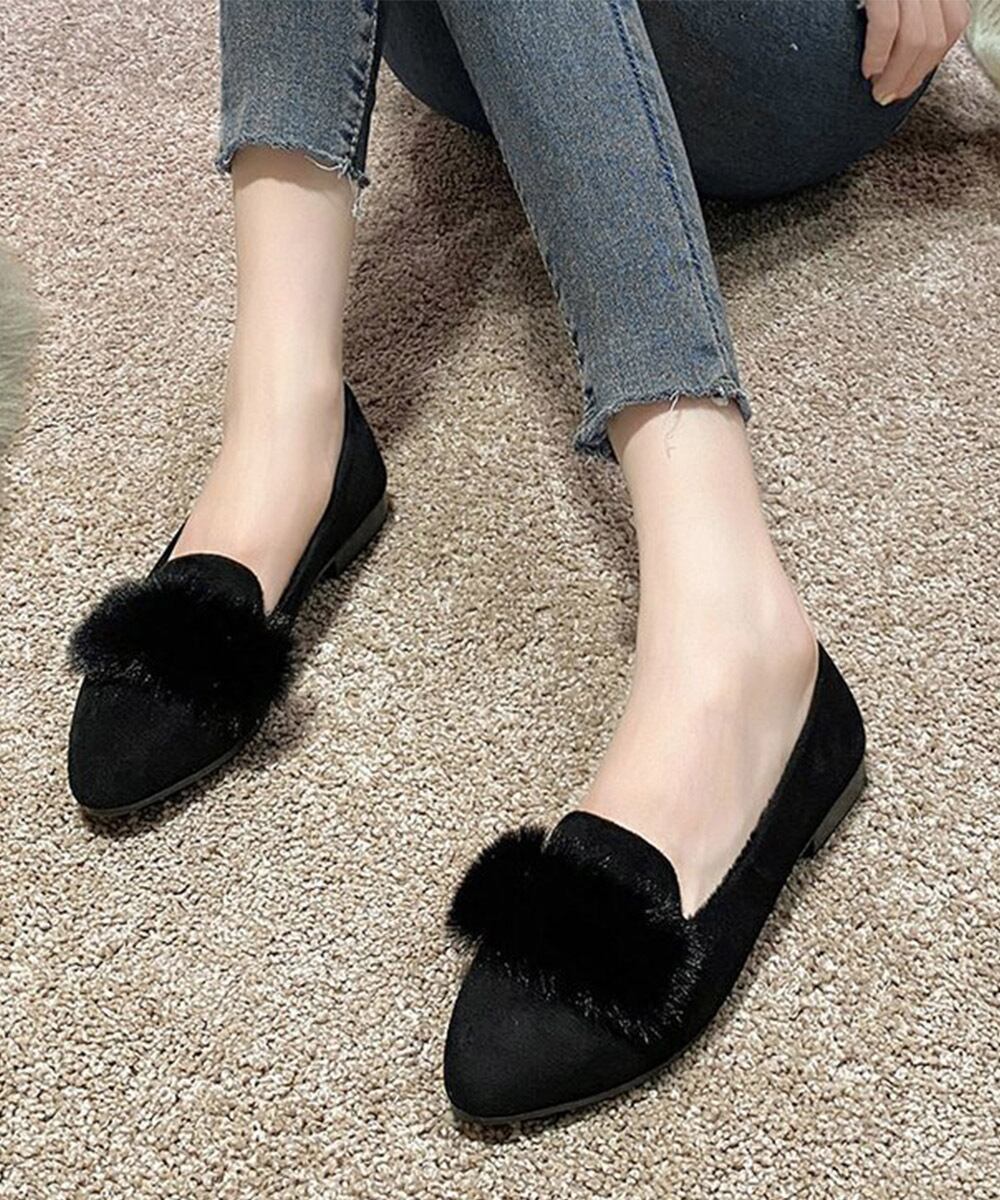 ふわふわのエコファーモチーフがポイントのフラットパンプスが登場しました!ポインテッドトゥのデザインが、大人っぽく美しいシルエットを引き立てます。