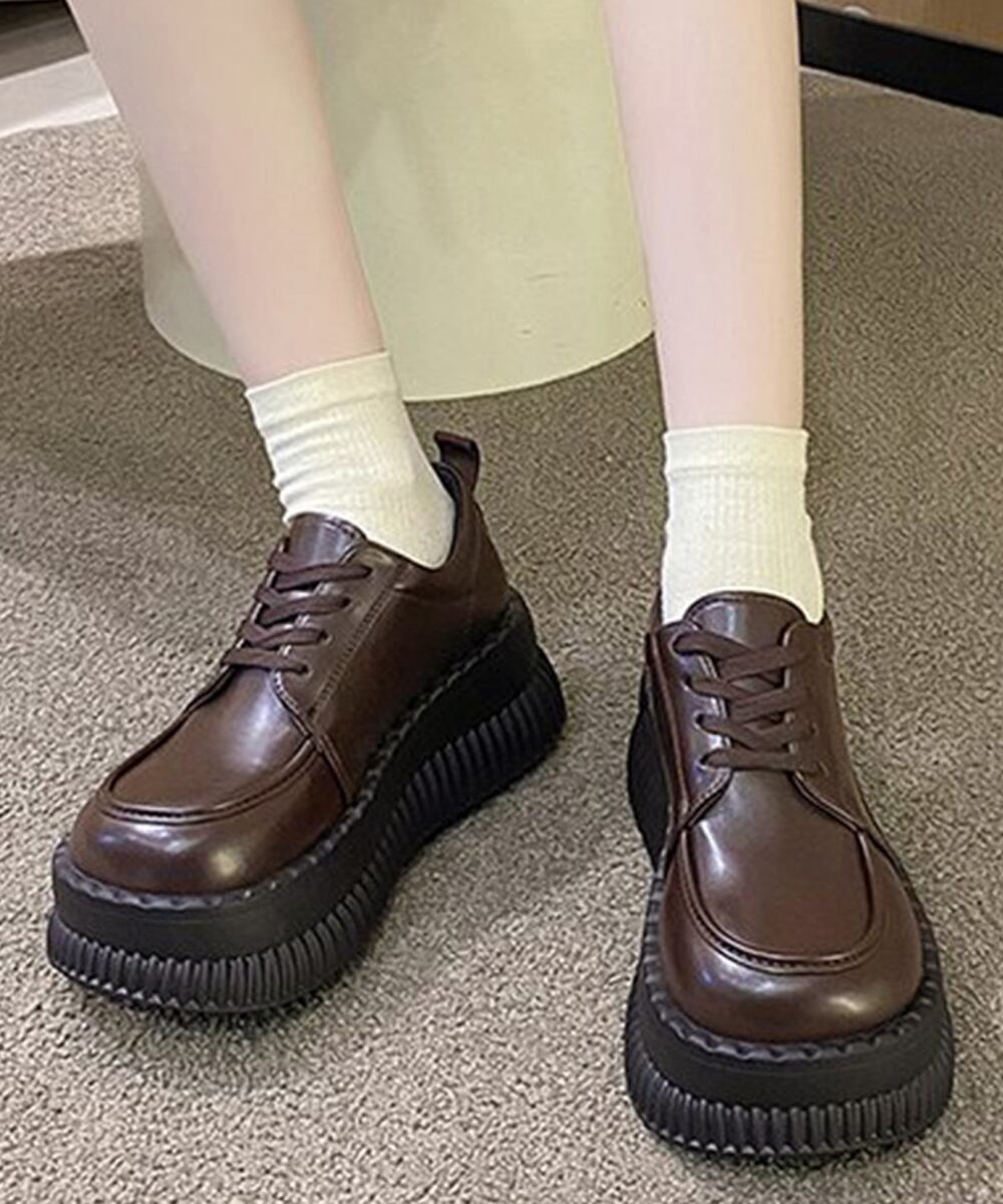 韓国っぽ」足元をアップデート、甘過ぎないレディライクなレースアップローファーが登場しました!フラット仕様厚底なので身長を盛っても歩きやすい、日常にお洒落を加えたい方に最適。定番カラーはコーデに取り入れやすく、通勤・通学・社内履きなど幅広く活躍するアイテムです。