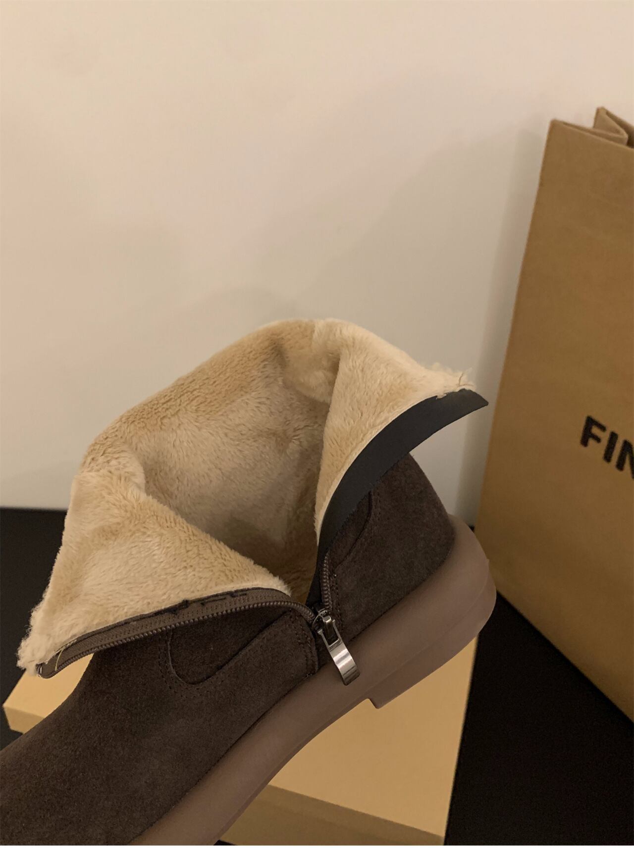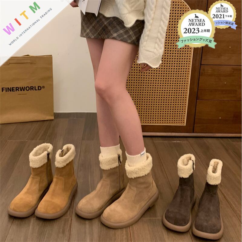 スノーブーツ ベロア 厚底 ショートブーツ 裏起毛 ローブーツ 靴 ファッション 防寒