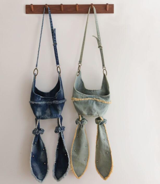 1. デニム素材がカジュアル感を演出!どんなスタイルにも合いやすく、デイリーユースから特別なシーンまで幅広くお楽しみいただけます。シンプルながらも存在感を放つ一品です♪
