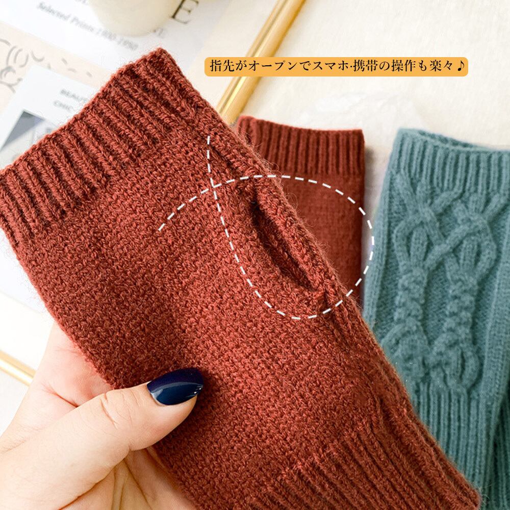 指先を動かしやすいフィンガーレスのニットグローブが登場です!このニットグローブは、かわいいケーブル編みニット素材で保温性とファッション性を両立させた冬の必需品です。指先がオープンでスマホ携帯の操作もラクラク!優れたデザインと肌触りの良い素材で、あなただけのスタイルを演出します♪