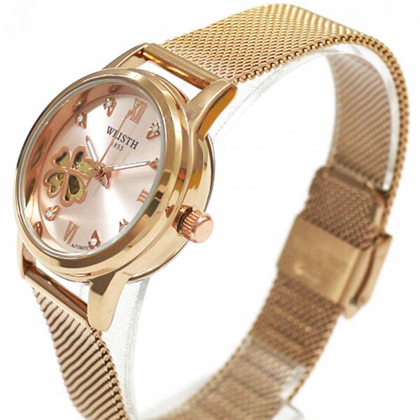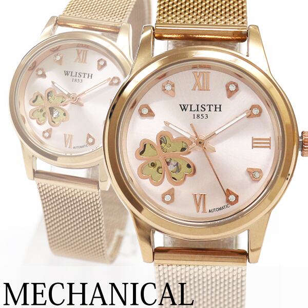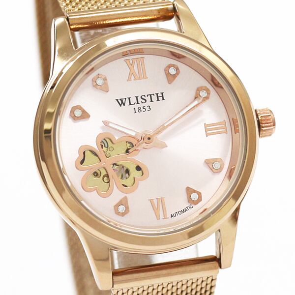 自動巻き腕時計 クローバー ラインストーン ピンクゴールドケース 機械式 WSA008-PKPG レディース腕時計