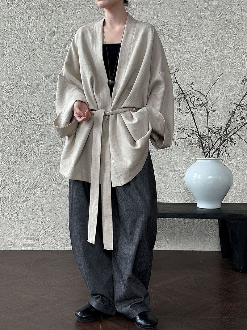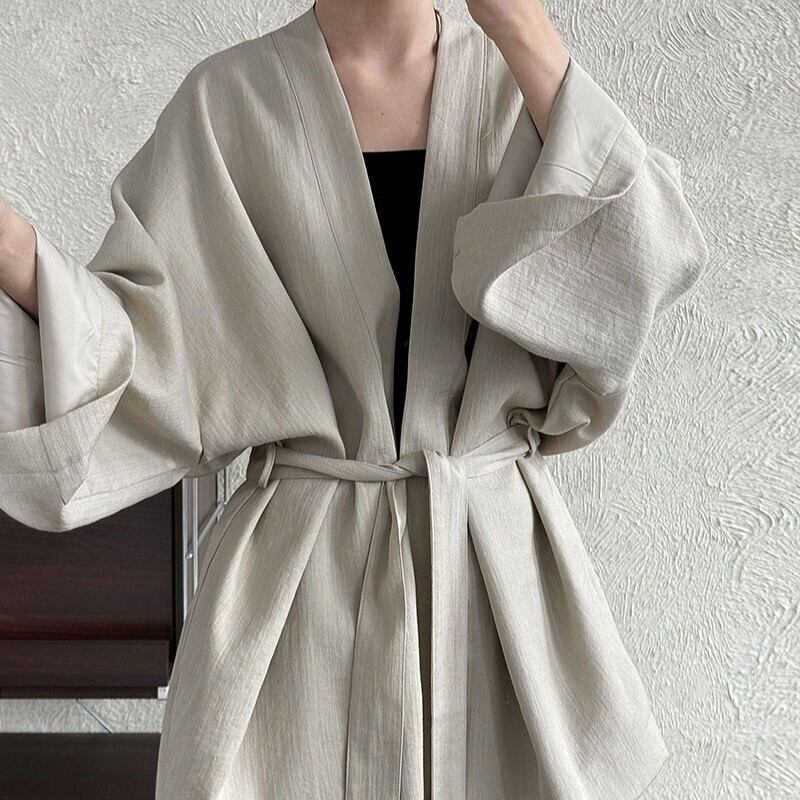 トップス レディース トレンチコート アウター 道袍 無地 2色 長袖 和風 2026春新作