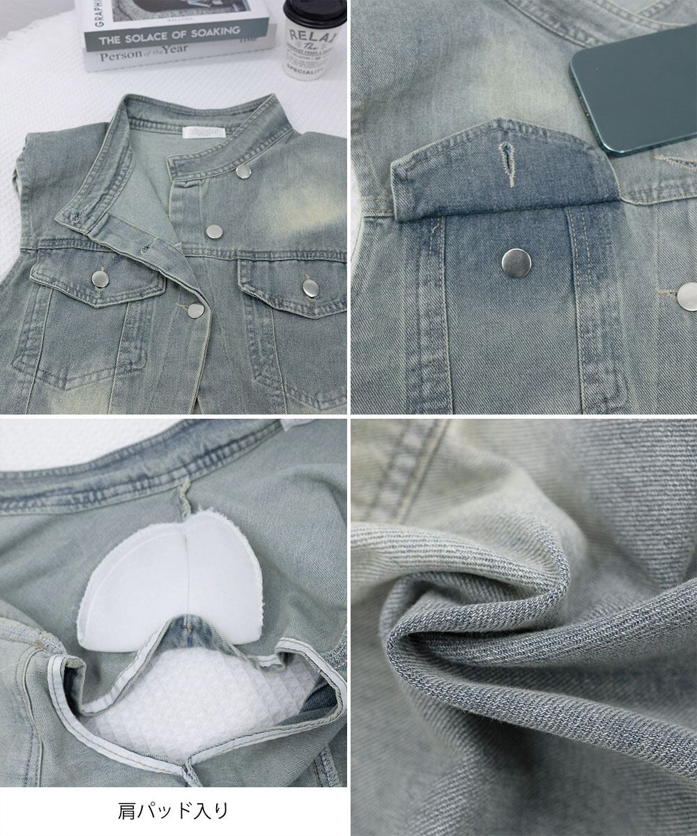 1. ウォッシュ加工が施されたデニム素材は、独特の風合いを持ち、さまざまなコーディネートに合わせやすい一枚です。スタイリッシュな立ち襟デザインが、顔まわりをすっきりと見せ、魅力を引き立てます♪