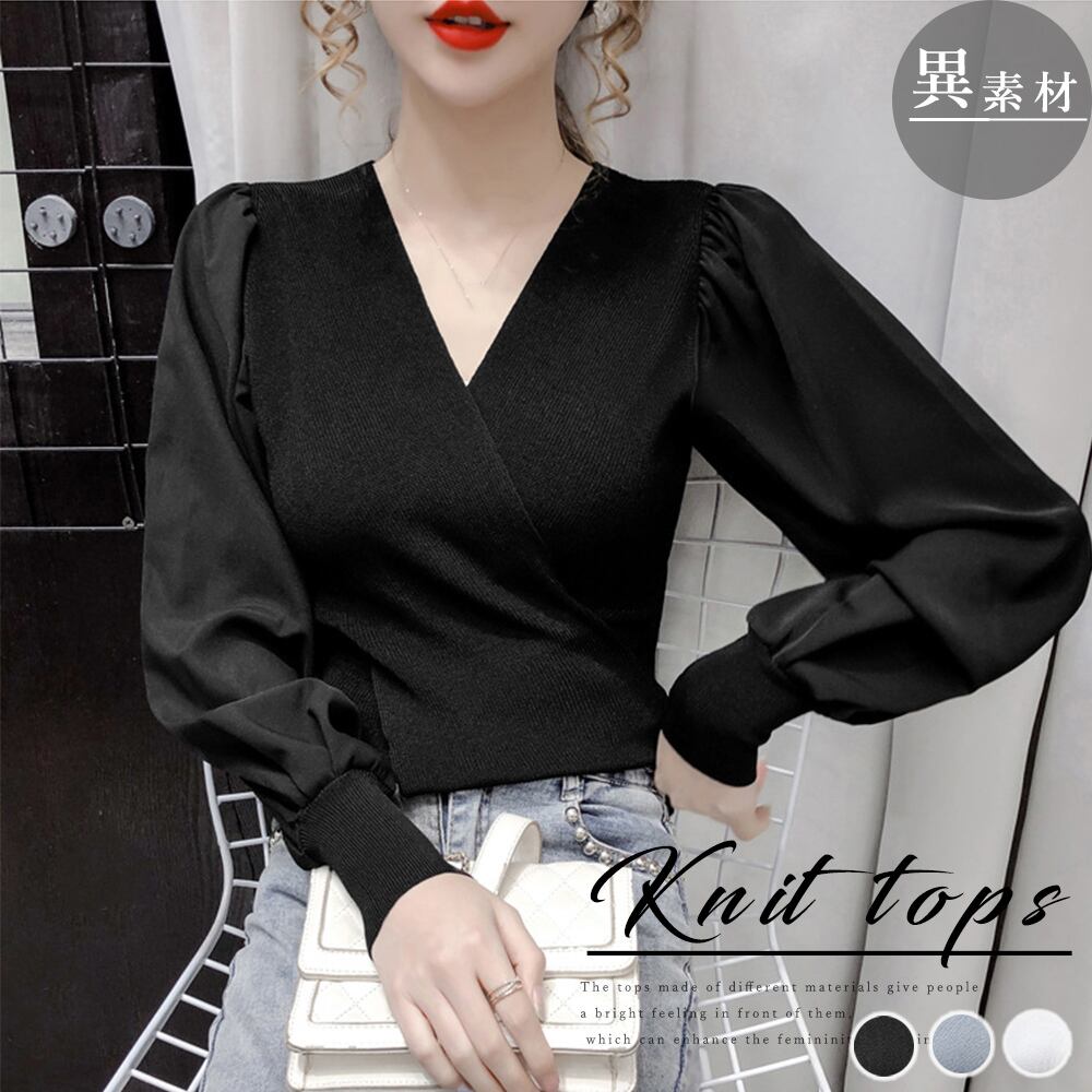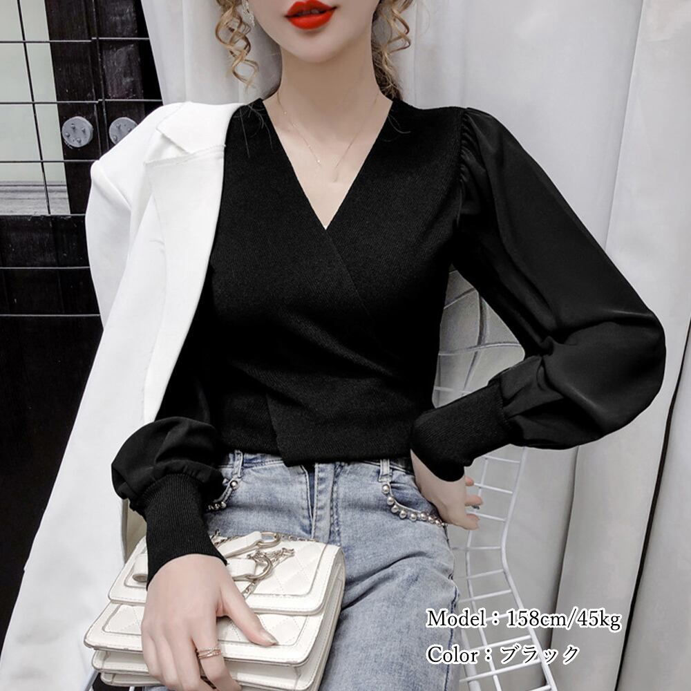 【日本倉庫即納】 バルーン袖 リブニットトップス 韓国風