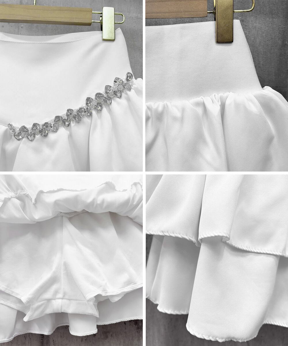 お待たせしました!今季のトレンドを取り入れたダブルフリルミニスカートが入荷しました!キラキラのラインストーンが映える2層のフリルデザインは、大人可愛いスタイルを実現しつつ、あなたの魅力を引き立てます。ハイウエストで、美脚見えを狙いながらラクなはき心地を実現。この夏、あなたのカジュアルコーデにぴったりの一枚です♪