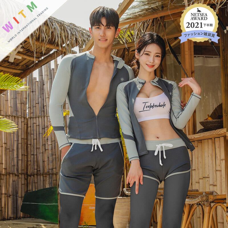 【日本倉庫即納】 水着 長袖ラッシュガード レディース5点上下セット メンズ3点上下セット セパレート UVカット
